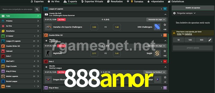 A aposta 888amor oferece aos jogadores a experiência mais conveniente de apostas em eSports!